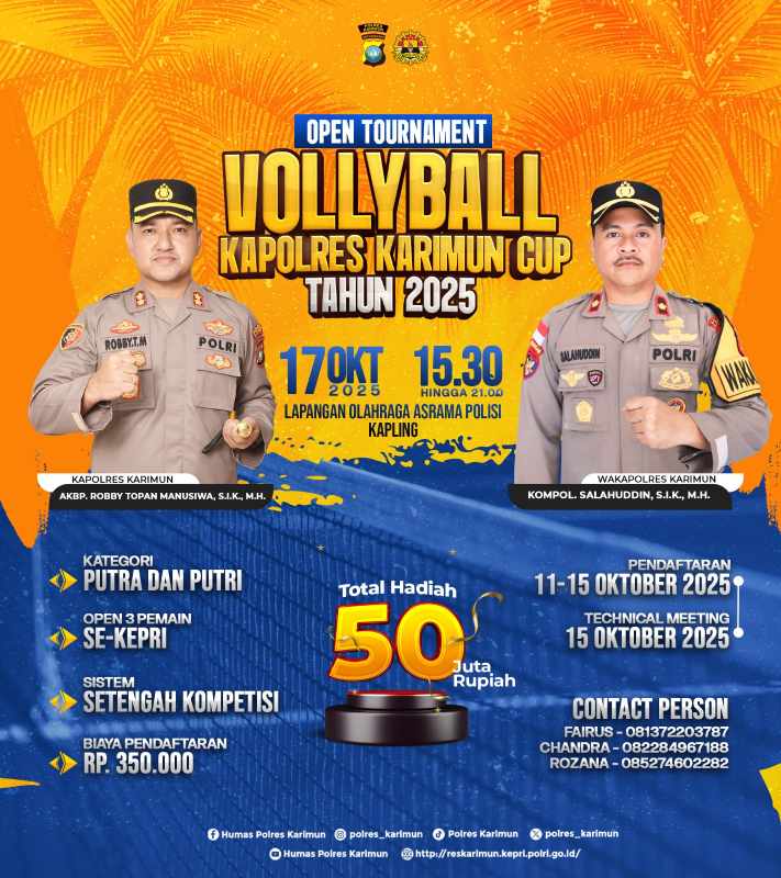 - Open Tournament Volly Ball Kapolres Karimun Cup 2025 Resmi Digelaroleh Redaksi