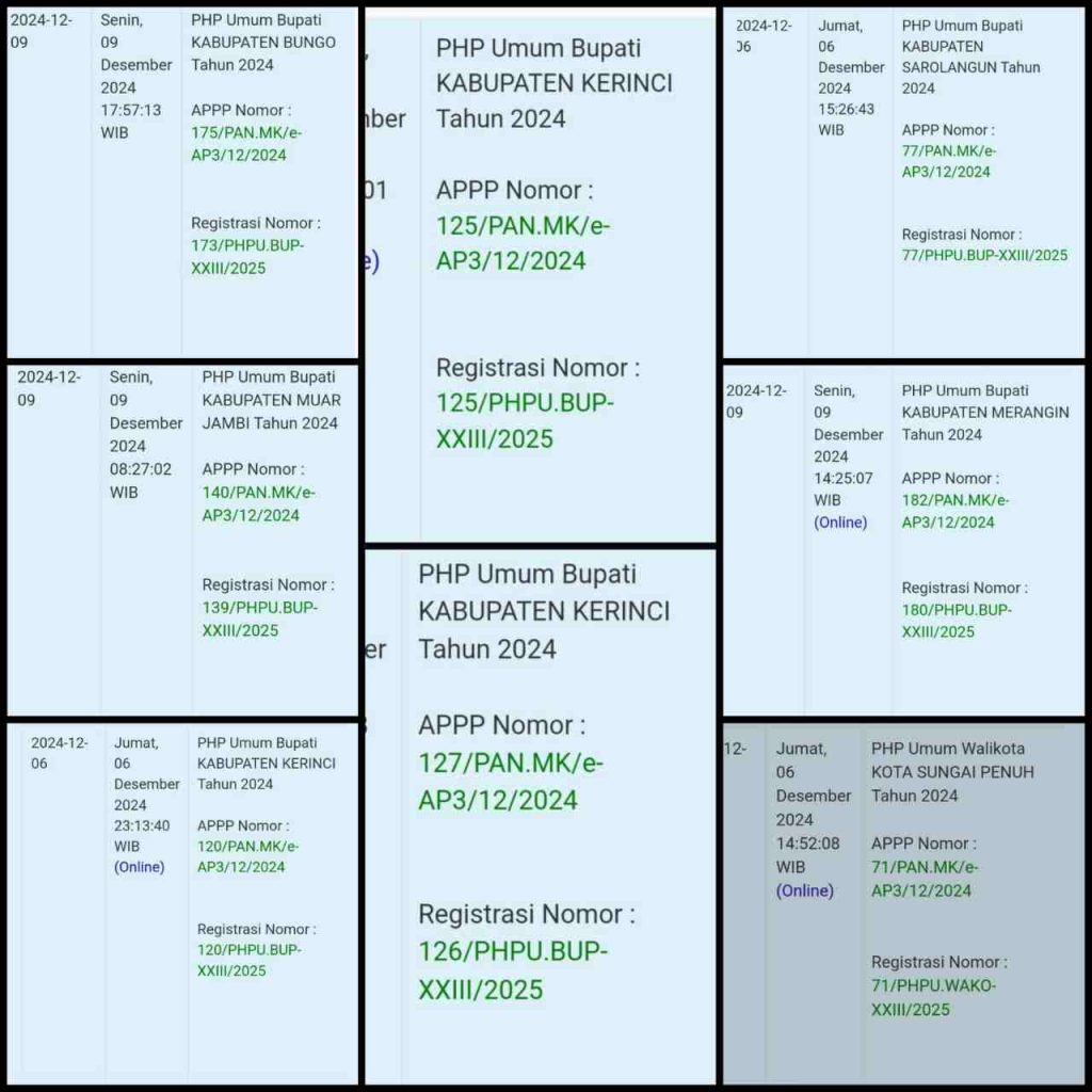 Dalam rilis MK tersebut, ada sebanyak delapan permohonan Perselisihan Hasil Pemilihan (PHP) dari enam daerah di Provinsi Jambi.