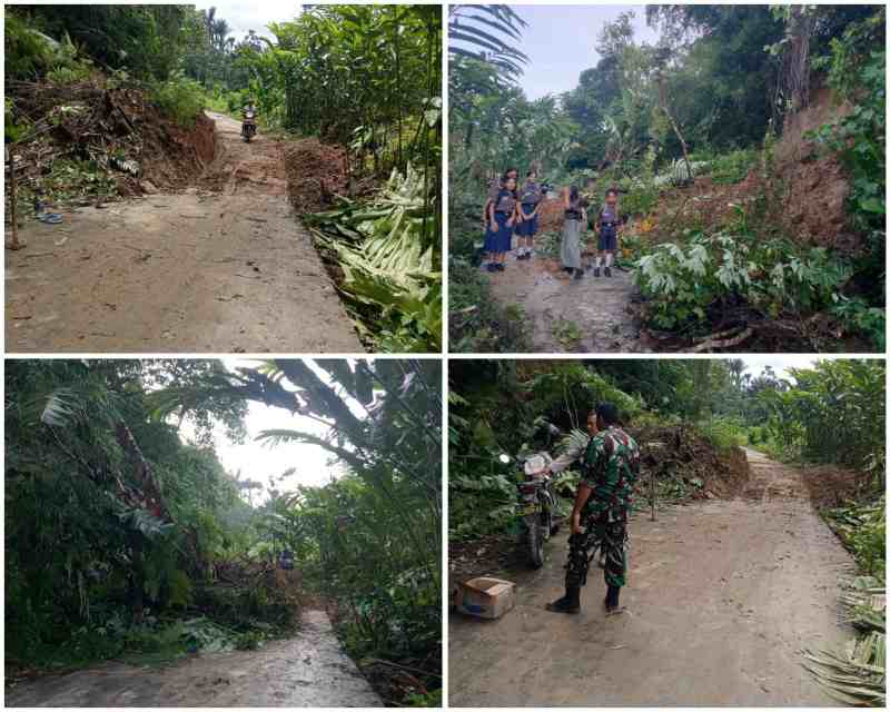 Kejadian ini mengakibatkan badan jalan tertutup material longsor, sehingga kendaraan roda empat belum dapat melintas, sementara roda dua masih bisa melewati jalur tersebut dengan hati-hati.