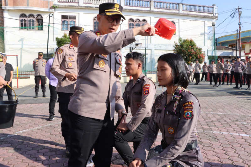 Tradisi penyambutan ditandai dengan penyiraman air kembang, sebagai simbol diterimanya para bintara remaja yang baru ke dalam keluarga besar Polres Samosir. Ada sebanyak 15 orang Personel Bintara Remaja yang diterima terdiri dari 12 polisi laki-laki dan 3 polisi wanita.