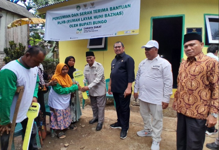 Bungo, PRESTASIREFORMASI.Com – Bupati Bungo, H. Mashuri,Sp.Me, meresmikan rumah layak huni bagi masyarakat tidak mampu melalui program bantuan dari Badan Amil Zakat Nasional (BAZNAS) Kabupaten Bungo provinsi Jambi,.
