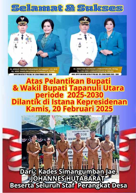 Selamat Dan Sukses atas Pelantikan Bupati dan Wabup Taput dari Kades Simangumban Jae