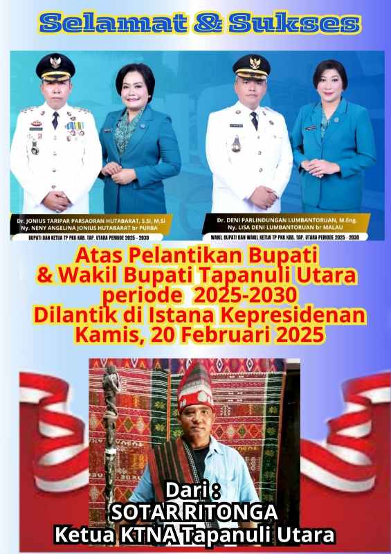 Selamat dan Sukses atas Pelantikan Bupati Dan Wabup Taput dari Ketua KTNA Tapanuli Utara