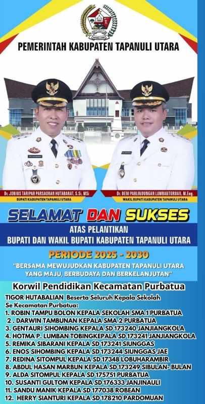 Ucapan Selamat & Sukses Pelantikan Bupati dan Wabup Taput dari Korwil Pendidikan Kecamatan Purbatua