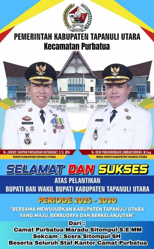Ucapan Selamat & Sukses atas Pelantikan Bupati dan Wabup Taput dari Camat Purbatua