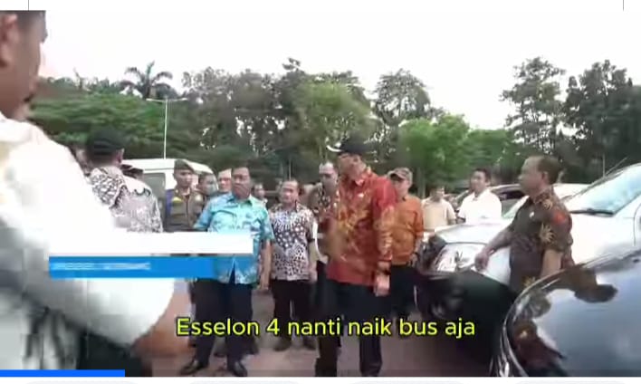 ” Nanti Eselon 4 naik bus aja tegas Bupati dr Asriluddin tanpa basa basi “.
