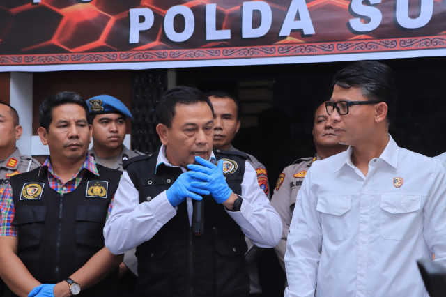 Konferensi pers dihadiri oleh sejumlah pejabat kepolisian, termasuk Dirreskrimum Polda Sumut Kombes Pol. Sumaryono, S.H., S.I.K., M.H., Kabid Labfor Polda Sumut Kombes Pol. Abdul Karim Tarigan, S.H., serta Kapolres Samosir AKBP Yogie Hardiman, S.H., S.I.K., M.H.