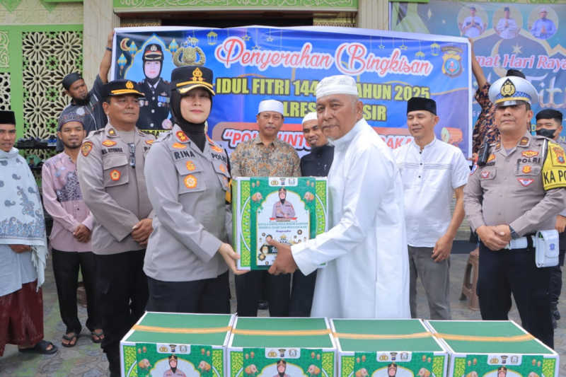 Kapolres Samosir AKBP Rina Frillya, S.I.K. bersama jajaran Polres Samosir menggelar kegiatan sosial dengan menyerahkan bingkisan Idul Fitri kepada masyarakat Muslim di Masjid Al-Hasanah, Kecamatan Pangururan, Kabupaten Samosir, pada Jumat (28/3/2025) siang.