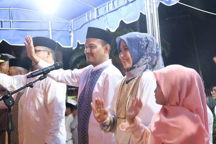 Wali Kota Tanjungbala, Mahyaruddin Salim didampingi Ketua TP-PKK Mashandayani Mahyaruddin bersama Wakil Wali Kota Muhammad Fadly Abdina dan Forkopimda Tanjungbalai melepas secara langsung Pawai Takbiran yang diawali dengan laporan komandan barisan.