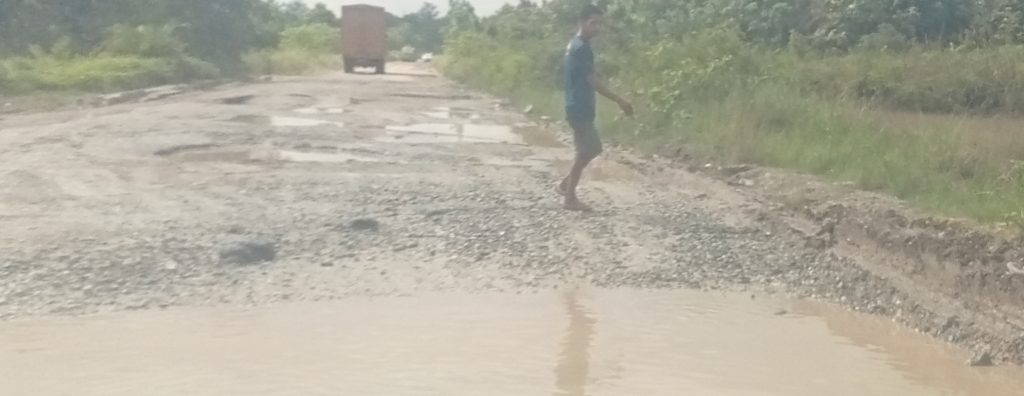 Sedangkan jalan yang berlobang tanpa ditembungake. Saat warga setempat ditemui, hanya menyalahkan pemerentahan mereka saja karna pemerintahan kurang perhatian tutur warga.kini jalan tersebut penuh air lumpur dan tanah sehingga kendaraan yang melintas merasa kesulitan dan penuh waspada.harapan para pengguna jalan segera ada perhatian Bupati,DPRD dan Gubernur setempat.mjn.