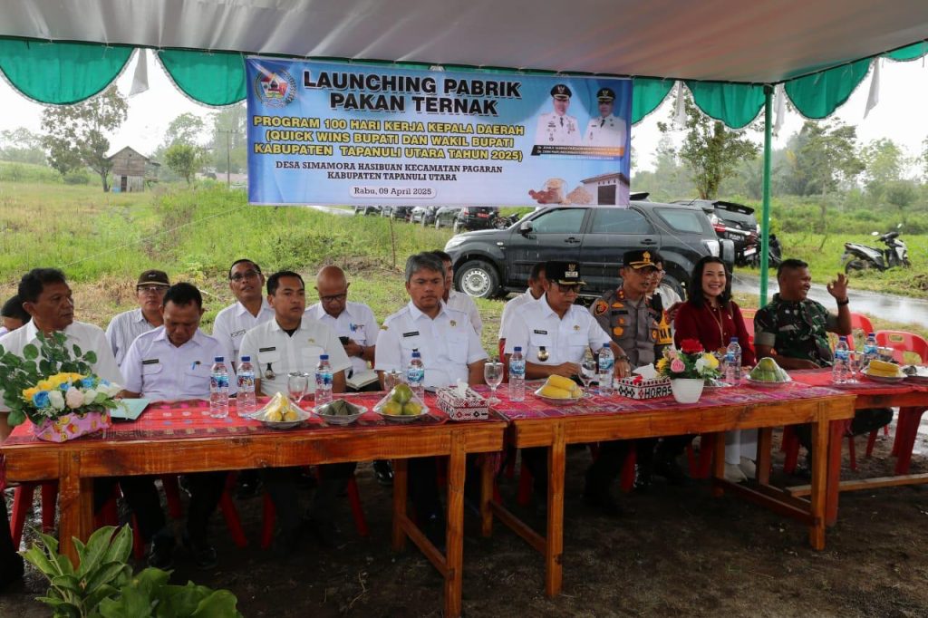 “Hari ini kita berkumpul dalam rangka peluncuran pabrik pakan ternak, yang menjadi salah satu strategi peningkatan produksi peternakan di Tapanuli Utara,” ujar Bupati.