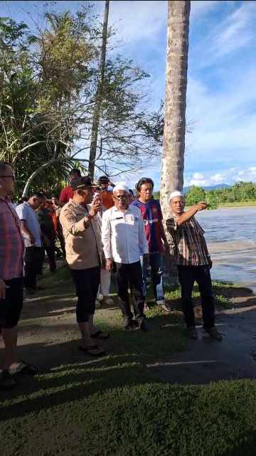 Masinton Pasaribu dan rombongan menelusuri pinggiran sungai sirahar,melihat titik yang cukup rawan sembari berdialog / berdiskusi dengan Tokoh,masyarakat dan para kades tekhnik penanggulan bencana banjir dengan mengutamakan kearipan lokal.