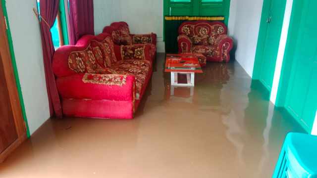 “Masuknya air ke pemukiman warga akibat jebolnya tanggul penahan banjir. Rumah warga dimasuki air dan satu tonggak listrik tumbang.”, jelas Lurah Padang Masiang yang akrab dipanggil Kang Med.
