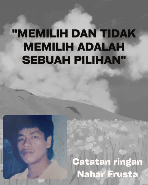 Kini setelah dewasa, pilihan memilih tidak memilih tentu lebih banyak pertimbangan. Dari latar belakang, sejarah, sikap hari ini, cita cita dalam visi misi adakah dasar pilihan memilih tidak memilih.
