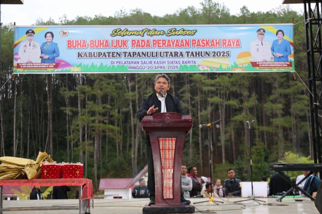 Dalam rangka perayaan Paskah tersebut oleh Bupati Taput Dr.Jonius Taripar Parlindungan Hutabarat S. Si, M. Si yang diwakili Wakil Bupati Dr. Deni Parlindungan Lumbantoruan M. Eng memimpin pawai obor dengan berjalan kaki ke kawasan Salib Kasih Siatas Barita bersama Forkopinda, OPD, Sekretariat Daerah Taput, Porkopinca Siatas Barita dan para siswa/siswi beserta undangan lainnya.