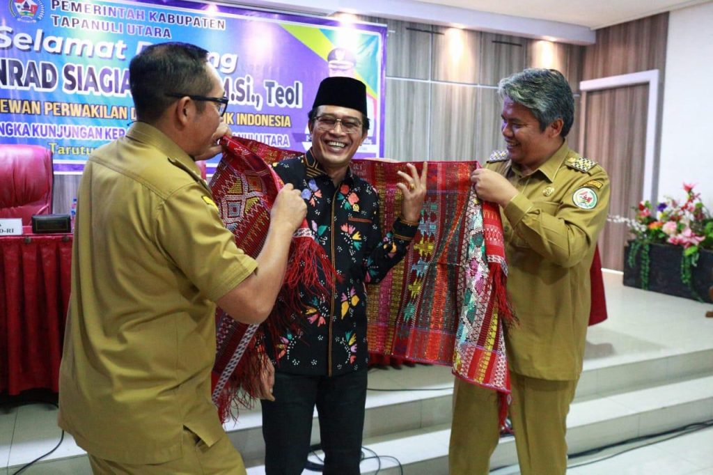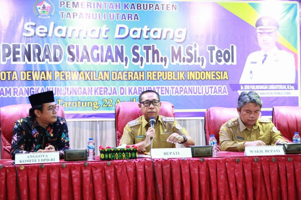 Dalam sambutannya, Bupati menyampaikan apresiasi dan ucapan terima kasih atas kunjungan kerja yang dilakukan oleh anggota Komite I DPD RI tersebut beserta rombongan. Kunjungan ini merupakan bagian dari upaya untuk menjaring masukan dan mendengarkan langsung pelaksanaan Undang-undang Pemerintahan Daerah di Kabupaten Tapanuli Utara.”Atas nama pemerintah dan masyarakat Kabupaten Tapanuli Utara, saya menyampaikan Terima Kasih atas kehadiran Bapak Pdt. Penrad Siagian beserta tim. Kehadiran ini sangat berarti dalam upaya memahami dan mengevaluasi pelaksanaan kewenangan yang dilimpahkan oleh Pemerintah Pusat dan Provinsi kepada Pemerintah Kabupaten,” ujar Bupati Taput.