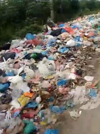 bahkan saat melintasi jalan sebelah kiri dan kanan jalan di penuhi sampah dan bau busuk menyegat yang mengakibatkan warga yang melintas mengalami sesak napas saat melintas melewati jalan
