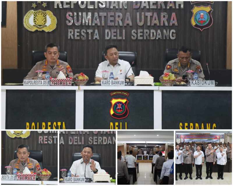 Kegiatan yang berlangsung di Aula Tri Brata Polresta Deli Serdang tersebut dimulai pukul 10.00 WIB dan dihadiri oleh Kabidkum Polda Sumut Kombes Pol Ramses Tampubolon, S.H., Kapolresta Deli Serdang Kombes Pol Hendria Lesmana, S.I.K., M.Si., Tim Bankum Divkum Polri, serta Peserta perwakilan dari Polres jajaran Polda Sumut.