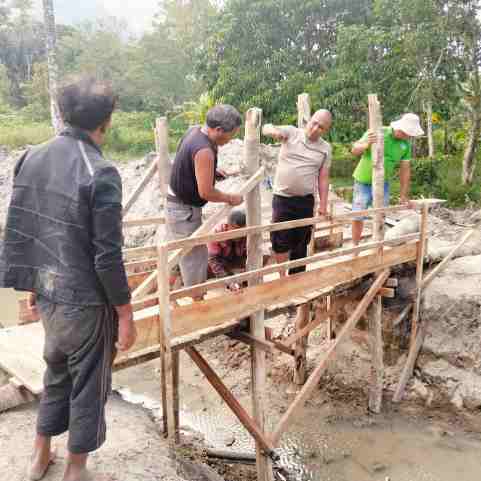 Pembuatan jembatan penghubung ke rumah Darma Ambarita.