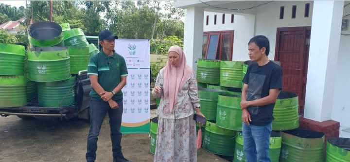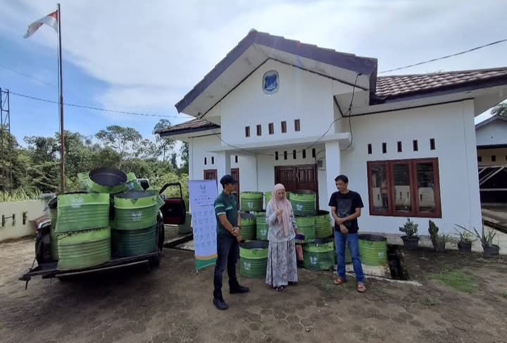 Puluhan tong tempat sampah bantuan PT IIS ini diserahkan oleh perusahan tersebut guna membantu desa dan kecamatan untuk penanggulangan sampah. di Kabupatèn Merlung.