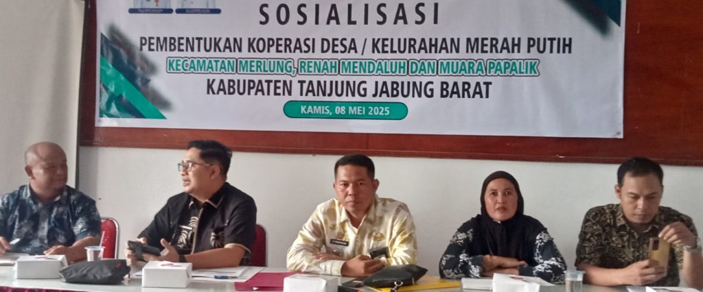 Tanjung Jabung Barat PRESTASIREFORMSI Com – .Dinas PMD dan Dinas Koperasi Tanjab Barat lalukan sosialisasi pembentukan Koperasi Merah Putih di kantor Camat Merlung kabupaten Tanjab Barat propinsi Jambi.