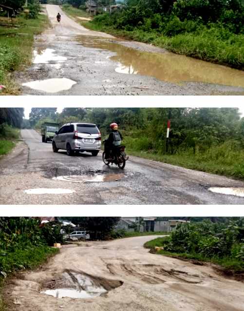 Bahkan banyak kendaraan pengangkut hasil perkebunan dan pertanian teguliing, juga patah As-nya karena jalan berlubang dan lilcin.