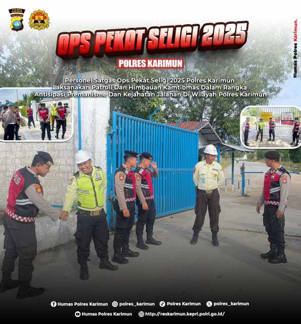 Patroli cegah aksi premanisme dilaksanakan setiap hari di wilayah Polres Karimun baik pagi siang maupun malam dengan sasaran tempat-tempat keramaian, dan obyek Vital dan tempat tempat rawan terjadinya aksi kejahatan jalanan. Termasuk PT MOS, PT Saipem, PT KMS, PT Sembawang, PT Oil Tanking, PLTU Soma, PT BAP, PLTU Bukit Carok, serta Pos Coastal Area.