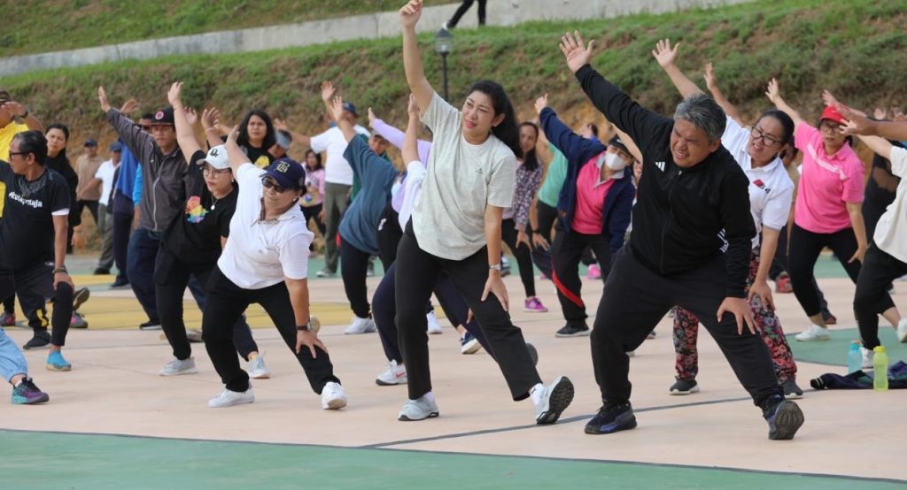 Taput, Prestasireformasi.com Wakil Bupati Tapanuli Utara, Dr. Deni Parlindungan Lumbantoruan, M.Eng bersama Ketua II Bidang Pendidikan dan Peningkatan Ekonomi Keluarga TP. PKK Kabupataen Taput, Ny. Lisa Deni Lumbantoruan br. Malau, didampingi para Asisten, Pimpinan OPD, dan Aparatur Sipil Negara (ASN), melaksanakan kegiatan senam pagi bersama di Menara Pandang, area Salib Kasih Siatas Barita, Jumat pagi (09/05/2025).
