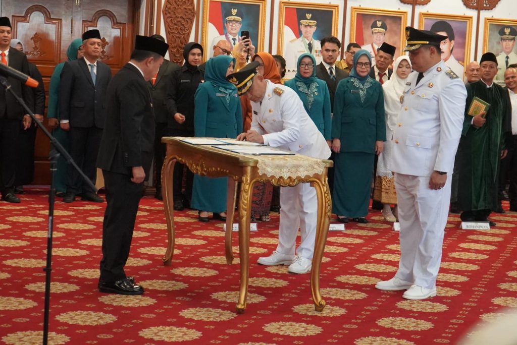 “Atas nama masyarakat dan Pemerintah Provinsi Jambi, saya mengucapkan selamat kepada Bupati dan Wakil Bupati Bungo Masa Jabatan Tahun 2025-2030, H. Dedy Putra, S.H., M.Kn dan Tri Wahyu Hidayat. Saya berharap agar saudara bisa mengemban tanggung jawab dengan amanah, yakni melaksanakan tugas dan fungsi dengan sebaik-baiknya, tentunya dengan berdasarkan pada aturan perundang-undangan atau regulasi yang berlaku,” ujar Gubernur Al Haris.