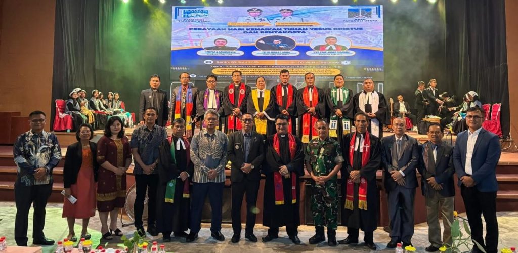 Taput, Prestasireformasi.com Bupati Tapanuli Utara Dr. Jonius Taripar Parsaoran Hutabarat, S.Si, M.Si bersama Wakil Bupati Dr. Deni Lumbantoruan, M.Eng menghadiri Perayaan Hari Kenaikan Tuhan Yesus Kristus dan Hari Pentakosta Turunnya Roh Kudus,tahun 2025 bertempat di Gereja Pentakosta Kudus Indonesia (GEPKIN) Tarutung, Senin (09/06/2025).