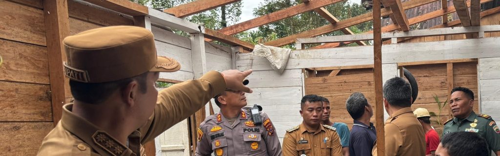 Taput, Prestasireformasi.com Bupati Tapanuli Utara Dr. Jonius Taripar Parsaoran Hutabarat, S.Si, M. Si bersama Wakil Bupati Dr. Deni Parlindungan Lumbantoruan, M. Eng dan Forkopimda didampingi Camat Pahae Julu Ade Harry Situmorang meninjau rumah korban kencang disertai hujan, bertempat di Dusun Sitonggi-tongi Desa Lontung Dolok Kecamatan Pahae Julu. (Selasa, 10 Juni 2025).
