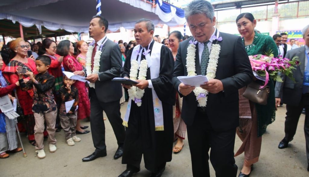 Taput, Prestasireformasi.com Wakil Bupati Tapanuli Utara, Dr. Deni Lumbantoruan, M.Eng bersama Ketua II Bidang Pendidikan dan Peningkatan Ekonomi Keluarga, Ny. Lisa Deni Lumbantoruan br. Malau mengikuti Ibadah sekaligus peresmian Gedung Baru GKPI Jemaat Khusus Tarutung Kota, Minggu (15/06/2025).