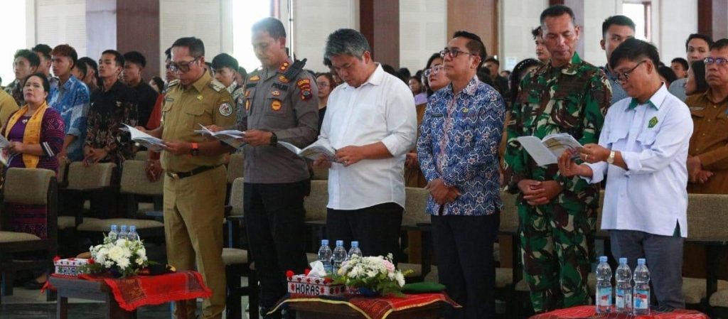 “Dalam menjalankan tugas kemasyarakatan, pertama sekali kita harus mengandalkan Tuhan dan menempatkan Tuhan di depan. Setiap pekerjaan harus seizin dan seturut kehendak Tuhan. Kita harus tulus dan ikhlas dalam mengabdi, serta hadir di tengah-tengah masyarakat agar kehadiran pemerintah benar-benar dirasakan dalam setiap keadaan,” tegas Bupati.