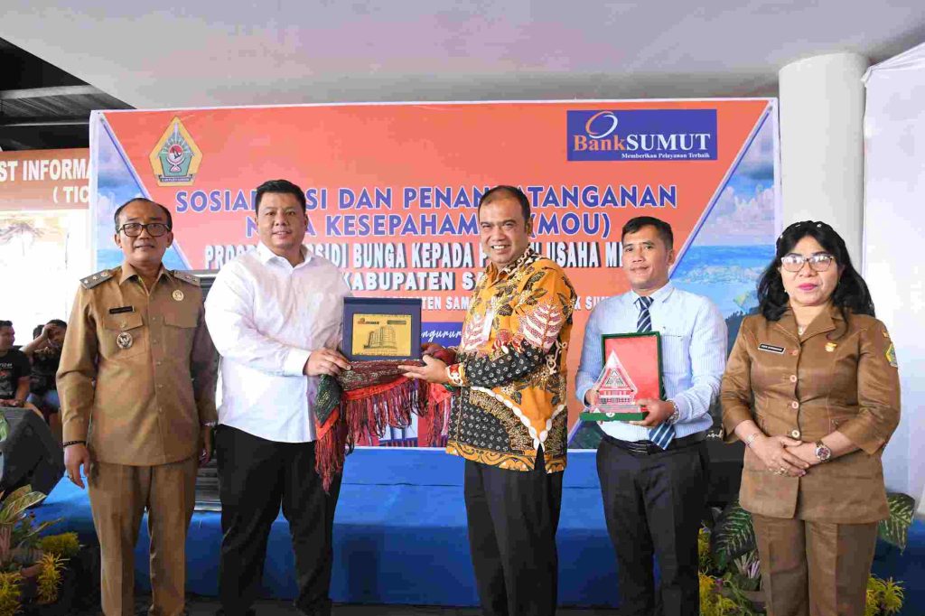 Pemerintah Kabupaten Samosir menjalin kerja sama strategis dengan PT Bank Sumut dalam upaya memperkuat sektor usaha mikro melalui program subsidi bunga pinjaman nol persen. Penandatanganan nota kesepahaman (MoU) tersebut dilakukan langsung oleh Bupati Samosir Vandiko Timotius Gultom dan perwakilan Bank Sumut di halaman Waterfront City, Pangururan, Senin (23/6/2025).