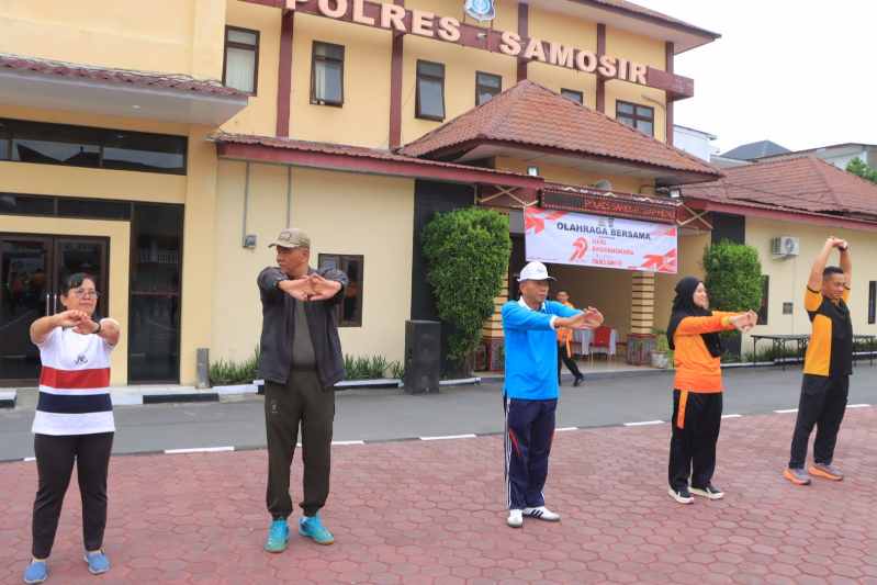 Polres Samosir menggelar olahraga dan senam bersama dalam rangka menyambut Hari Bhayangkara ke-79 yang jatuh pada 1 Juli mendatang. Kegiatan berlangsung Selasa (24/6/2025) pagi di Lapangan Markas Komando Polres Samosir dan diikuti berbagai elemen lintas instansi.