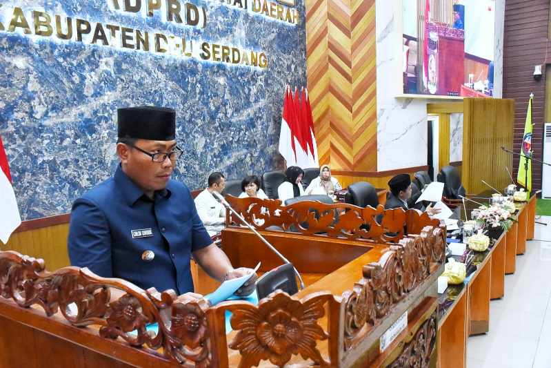 “Selain itu juga memuat berbagai program unggulan untuk mendukung tercapainya visi dan misi Deli Serdang,” sebut Wabup di rapat paripurna yang turut dihadiri Sekretaris Daerah (Sekda), H Timur Tumanggor SSos MAP dan para pejabat Pemkab Deli Serdang lainnya itu.