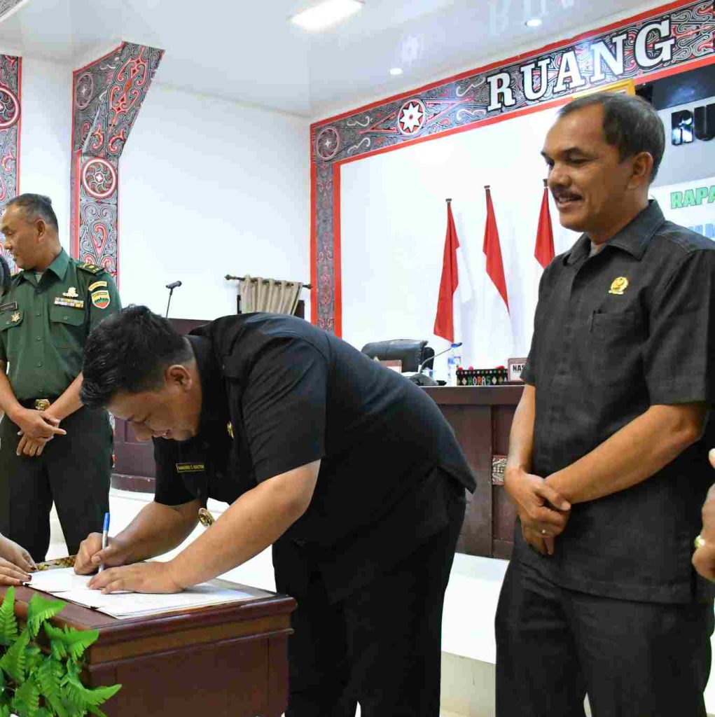 Penandatanganan persetujuan bersama dilakukan oleh Bupati Samosir Vandiko T. Gultom bersama Ketua DPRD Nasip Simbolon, serta Wakil Ketua DPRD Osvaldo Simbolon dan Sarhockhel Tamba.