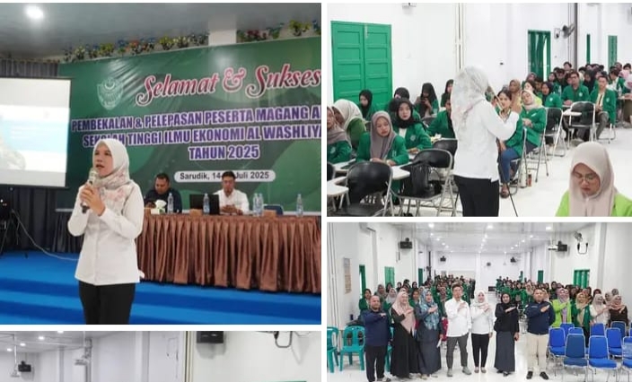 Sibolga,PRESTASIREFORMASI.COM – Bertempat di gedung Aula Sekolah Tinggi Ilmu Ekonomi (STIE) Al Washliyah Sibolga/Tapanuli Tengah digelar kegiatan Pembekalan Magang Angkatan V Senin, 14 Juli 2025. Kegiatan ini merupakan agenda rutin kampus dalam mempersiapkan para mahasiswa sebelum terjun langsung ke dunia kerja melalui program magang di berbagai institusi dan perusahaan.