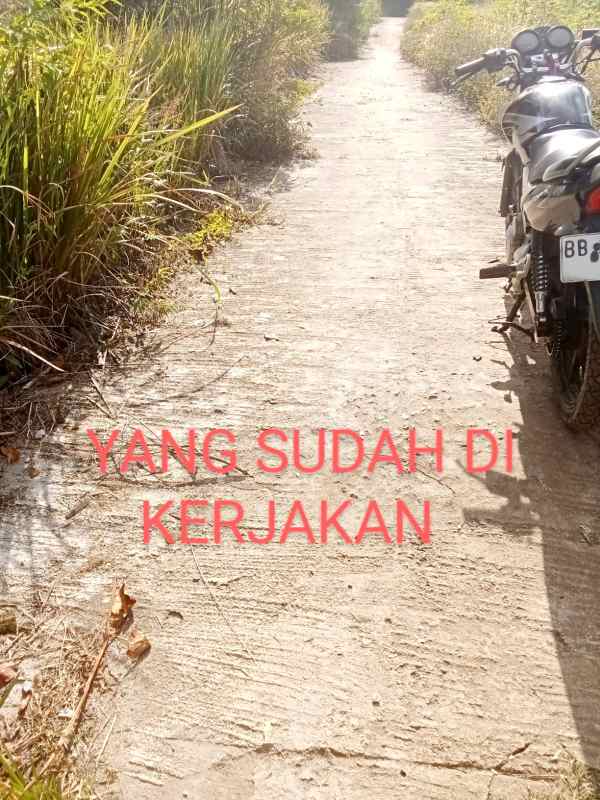 Pembangunan fisik jalan yang direncanakan panjang 80 meter dan lebar 2,5 meter, ternyata hanya separoh yang baru dikerajakan.