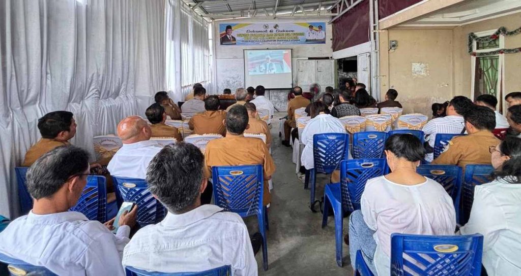 Taput, PRi. Com – Bupati Tapanuli Utara, Dr Jonius Taripar Parsaoran Hutabarat, S.Si., M.Si., bersama Wakil Bupati Dr. Deni Lumbantoruan, M.Eng., Forkopimda/mewakili, serta Kepala Bank di wilayah Kabupaten Tapanuli Utara, mengikuti kegiatan Peluncuran Kelembagaan 80.000 Koperasi Desa/Kelurahan Merah Putih oleh Presiden RI H. Prabowo Subianto yang dilaksanakan serentak secara nasional melalui aplikasi Zoom Meeting, Tarutung, Senin/21 Juli 2025.