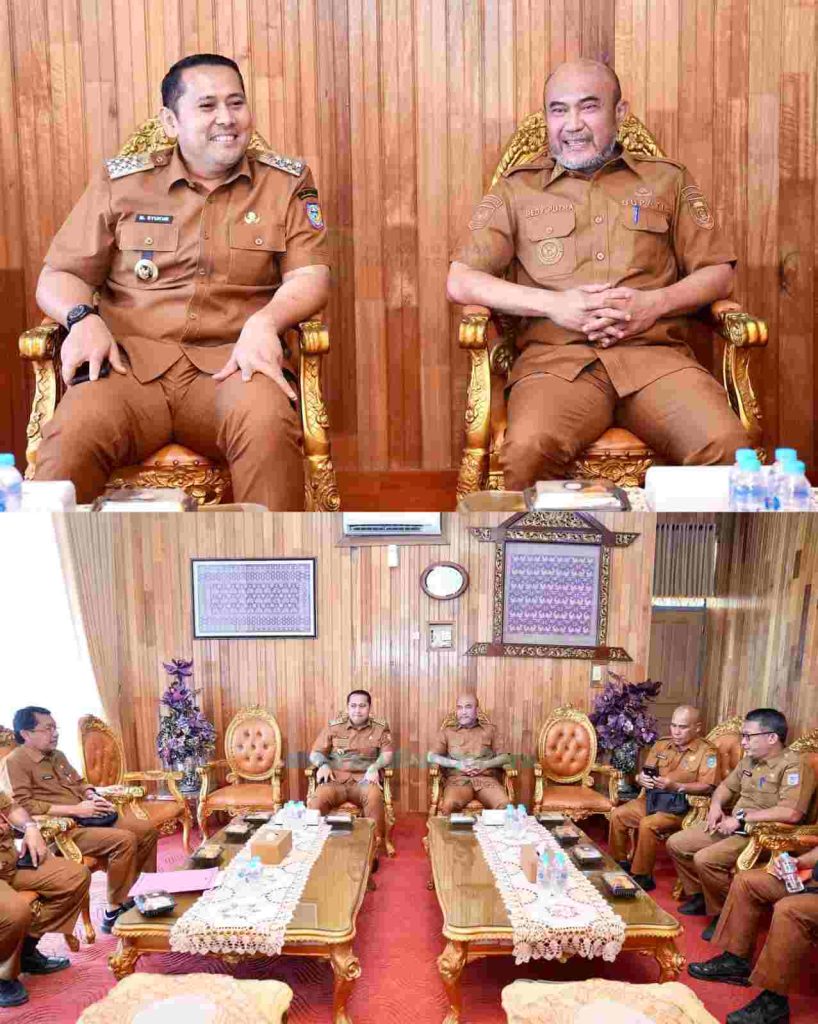Bungo, PRESTASIREFORMASI.Com – Bupati Bungo, H. Dedy Putra, S.H., M.Kn, menerima kunjungan Bupati Merangin, H. M. Syukur, S.H., M.H, dalam agenda audiensi terkait permasalahan Izin Hak Guna Usaha (HGU) milik PT. Prima Mas Lestari (PT. PML), perusahaan yang bergerak di bidang perkebunan kelapa sawit, Senin (28/07).