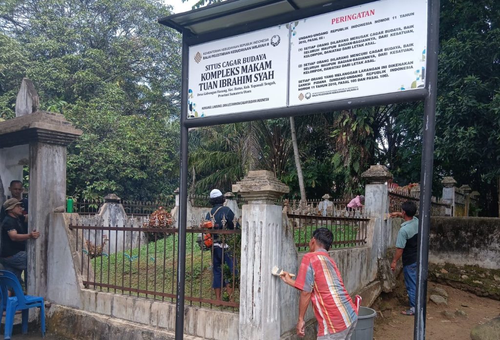 Barus.Pri.Com.Panitia ziarah akbar haul Syekh Ibrahimsyah Pasaribu melaksanakan gotong royong pembersihan dan pengecatan pagar di komplek makam Syekh Ibrahimsyah Pasaribu,Sabtu (2/8) di desa Gabungan Hasang kecamatan  Barus.