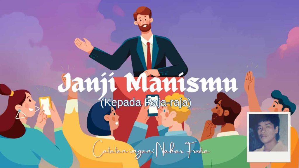 Apakah janji-janji itu harus dipenuhi walaupun talah berlalu. Ya, Janji itu adalah untuk esok hari dan masa depan, Apalagi janji yang terucap dengan sapuan dan tepukan dibahu dengan kembut. Atau lewat suara lantang di atas podium dengan harapan mendapatkan dukungan atau pilihan dari banyak orang, didengar, direkam orang banyak.