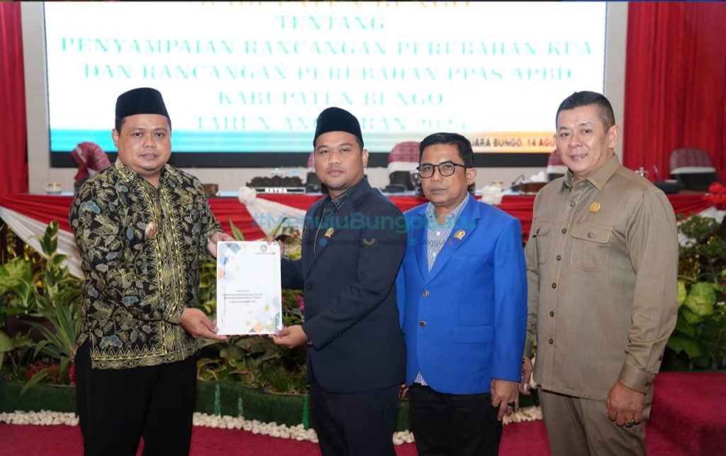 Bungo, PRESTASIREFORMASI.Com – Wakil Bupati Bungo Tri Wahyu Hidayat menghadiri Rapat Paripurna Penyampaian Rancangan Perubahan Kebijakan Umum Anggaran (KUA) dan Rancangan Perubahan Prioritas dan Plafon Anggaran Sementara (PPAS) APBD Kabupaten Bungo Tahun Anggaran 2025, Kamis (14/8/2025).