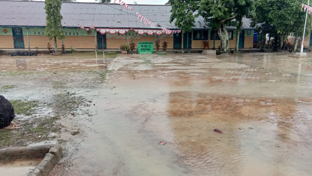 “Kalau sudah turun hujan, di sini selalu banjir. Kasihan anak-anak tidak bisa belajar, apalagi banjir ini mengenai lingkungan sekolah. Kami berharap pemerintah memperhatikan kondisi ini,” ungkapnya.