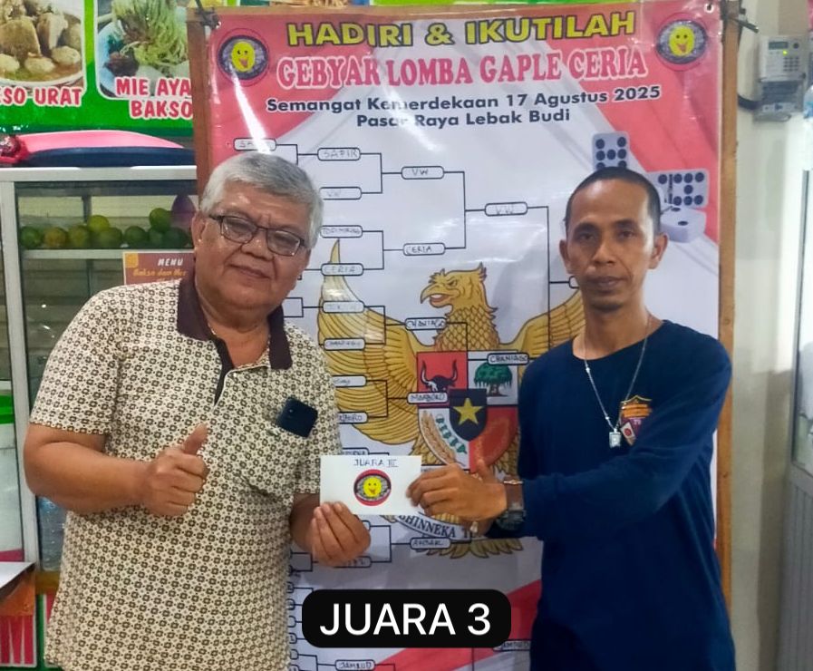 BANDAR LAMPUNG, PRESTASIREFORMASI.Com – Momentum acara lomba turnamen gaple ceria dalam rangka memeriahkan HUT RI ke 80 tahun, acara tersebut dilaksanakan di anjungan pasar raya lebak Budi kota Bandar Lampung, Minggu 17/Agustus/2025.