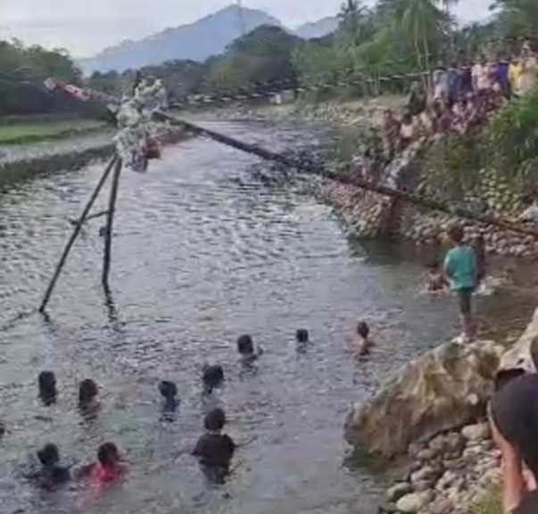 Agustusan di Kampung Mudik Barus Panjat Pinang Diatas Sungai Sirahar.(Foto Nahar PRi.com)