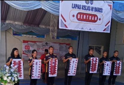 Kalapas Barus Binur Sitanggang menyampaikan ide brilian dengan julukan Barus kota Bertuah. ” Mohon Izin pak Bupati, kata”BERTUAH itu kami akronim kan dengan ” Bersih, Energik, Ramah, Tertib,Unggul,Aman dan Humanis” jadi Lapas Barus Bertuah.” tandas Binur Sitanggang.