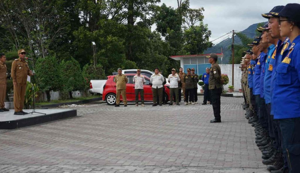 Taput PRi. Com – Usai Apel Pagi Gabungan bersama Perangkat Daerah, Bupati Tapanuli Utara Dr. Jonius Taripar Parsaoran Hutabarat, S.Si, M.Si, memimpin Apel Kesiagaan bersama Satuan Polisi Pamong Praja (Satpol PP) Kabupaten Tapanuli Utara di halaman Kantor Bupati Tapanuli Utara-Tarutung, (Senin, 01/09/2025).