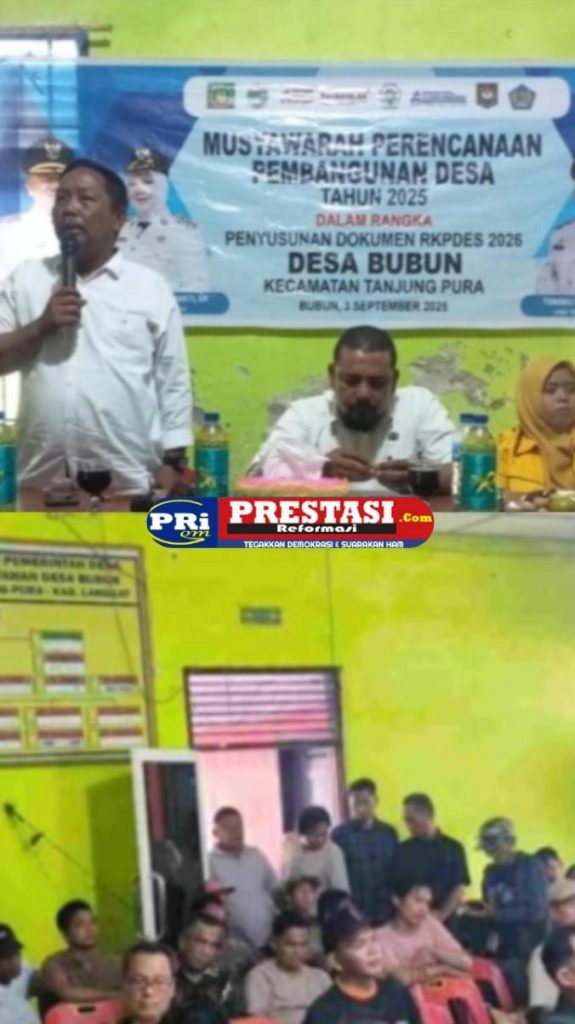 Langkat,PRESTASIREFORMASI.com – Desa Bubun, Kecamatan Tanjung Pura – Kabupaten Langkat berhasil melakukan Musyawarah Perencanaan Pembangunan (Musrenbang) Desa untuk tahun 2025 pada Rabu (03/09/2025) yang di laksanakan di Aula Kantor Desa Bubun, Musrenbang ini dengan Tema prioritas pembangunan yang berfokus pada infrastruktur dan pemberdayaan ekonomi masyarakat.